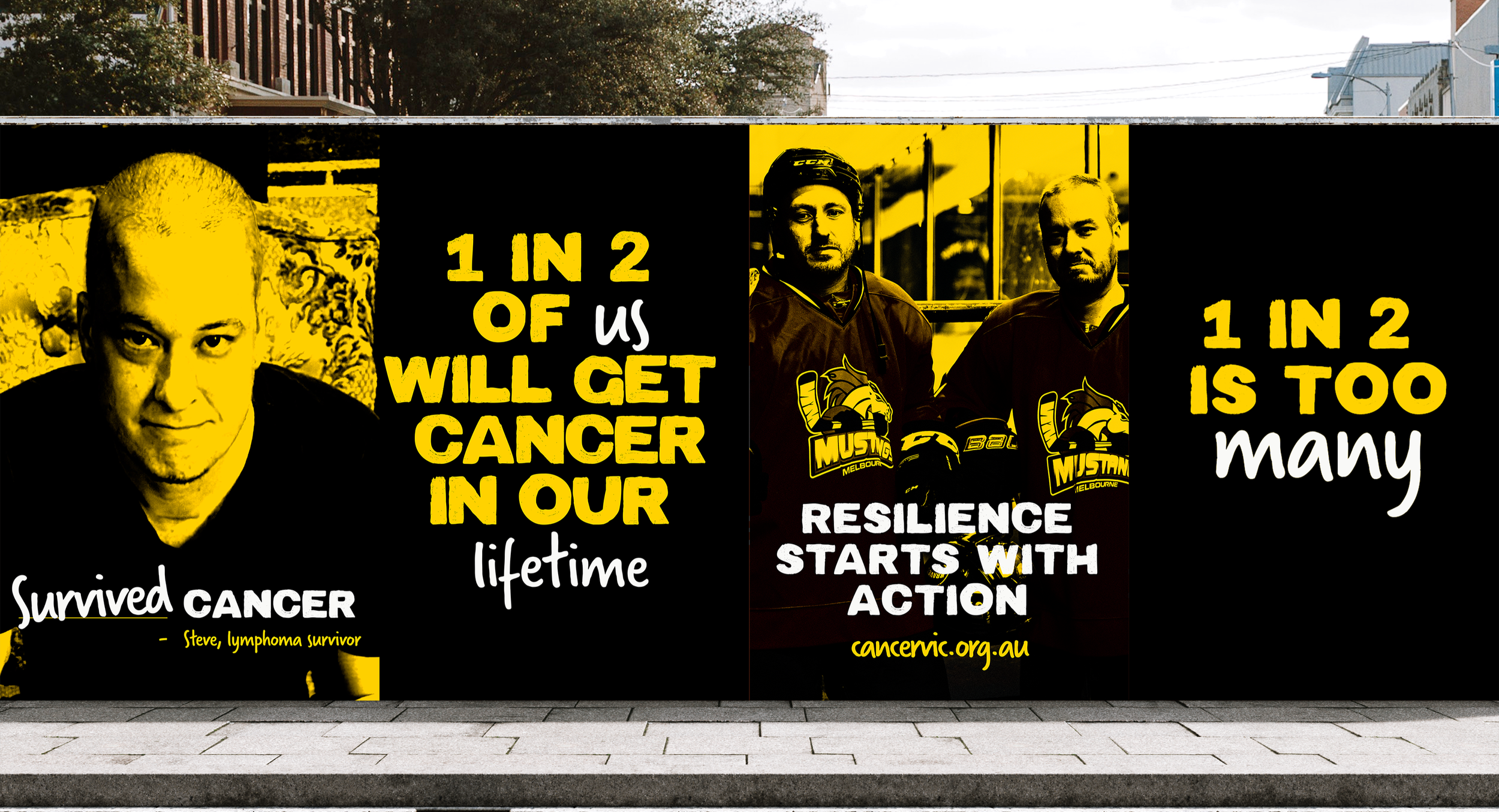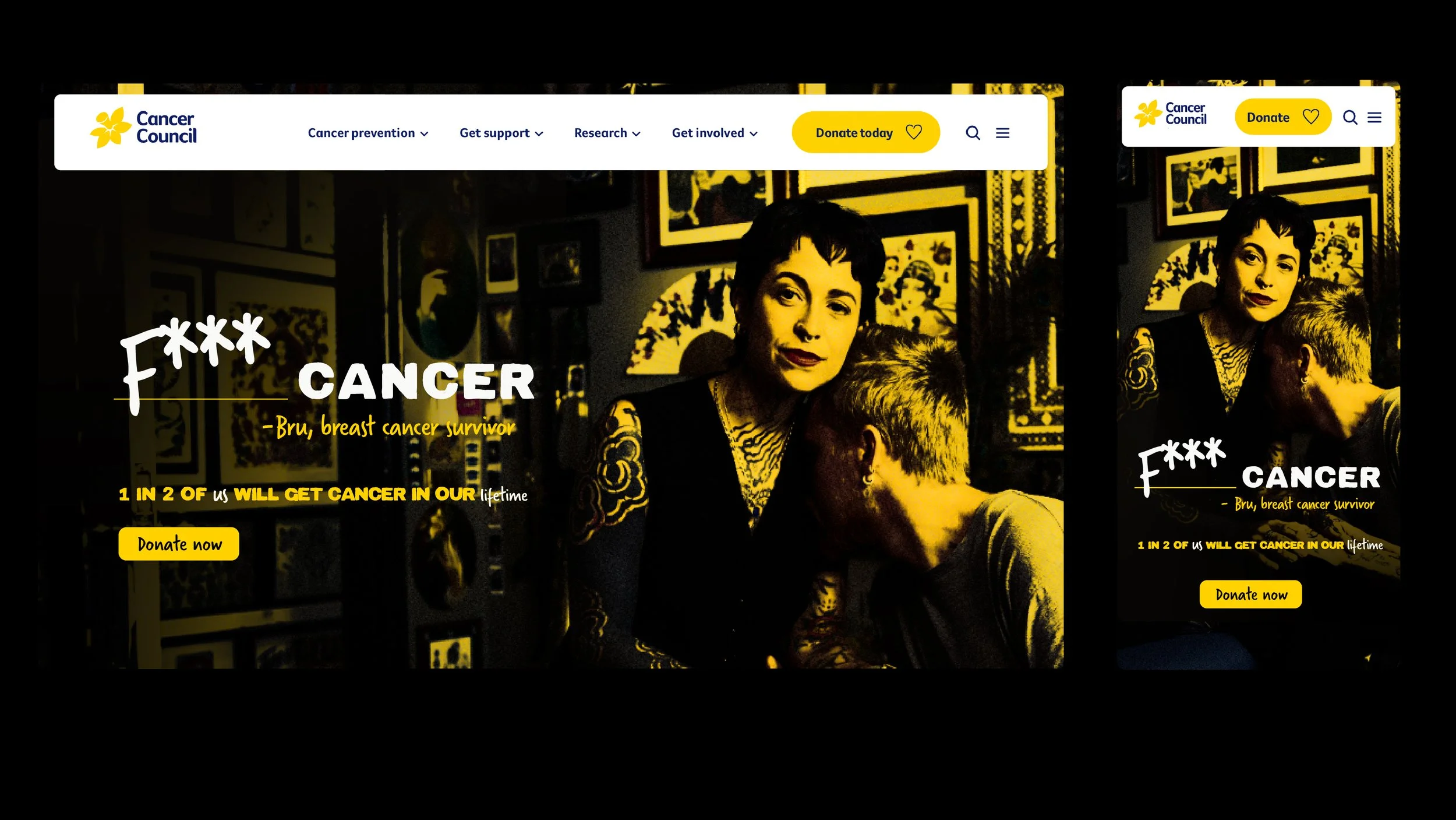 1 in 2 is my design-led reinterpretation of an existing Cancer Council Victoria brand campaign. While the original campaign communicated the statistic in a more conservative way, this exploration responds to a different problem: how to make the emotional reality of a cancer diagnosis felt and empower people to take action?